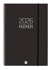 AGENDA ANUAL (2026) FINOCAM ESPIRAL OPAQUE ESPIRAL tapa PP con GOMA E40 210x297 S/V NEGRO